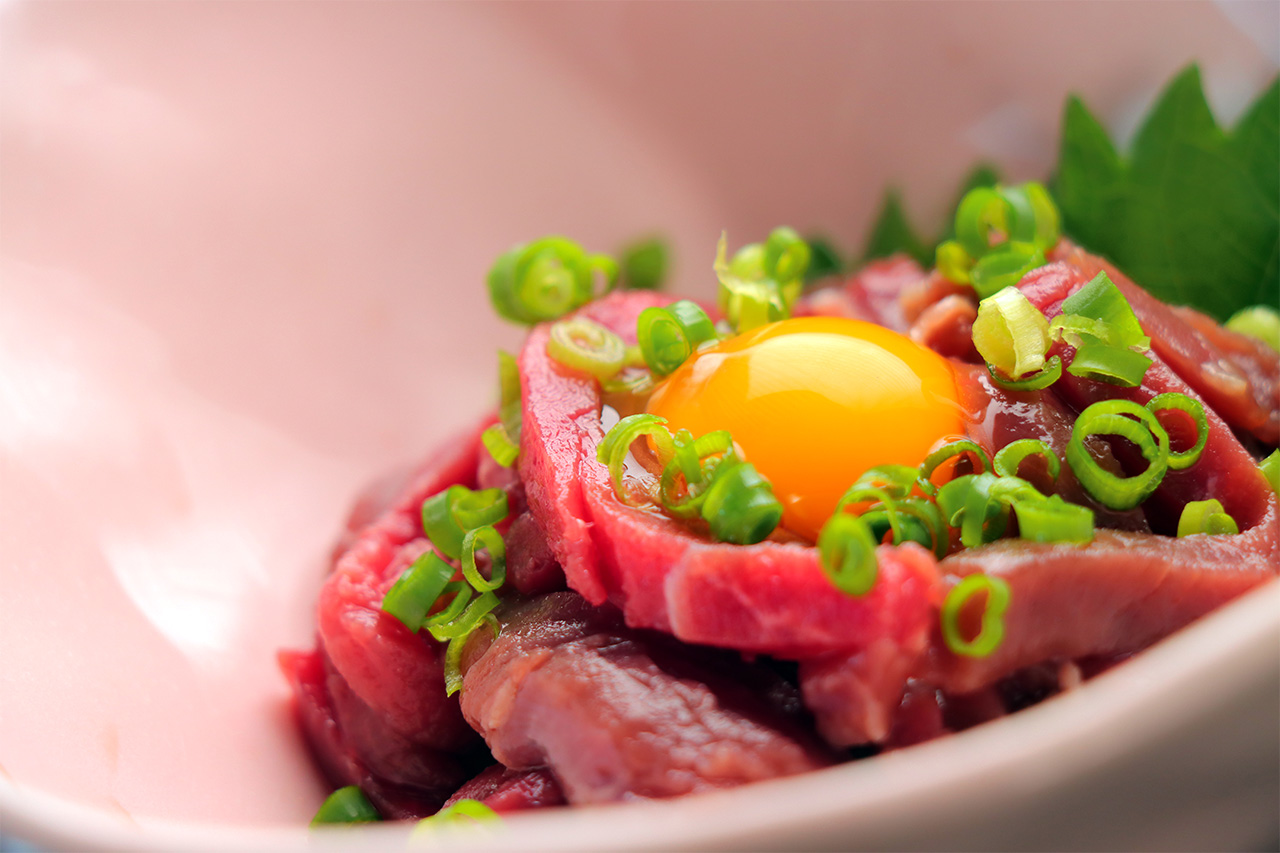 名物 馬刺し 玉葱・生姜・ネギ・レモン