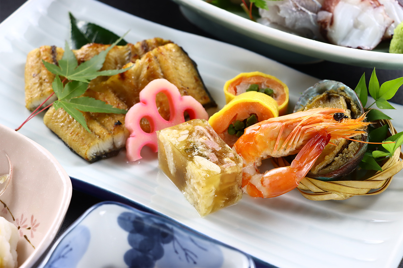 焼物 うなぎの白正油焼き・アワビの旨煮 等